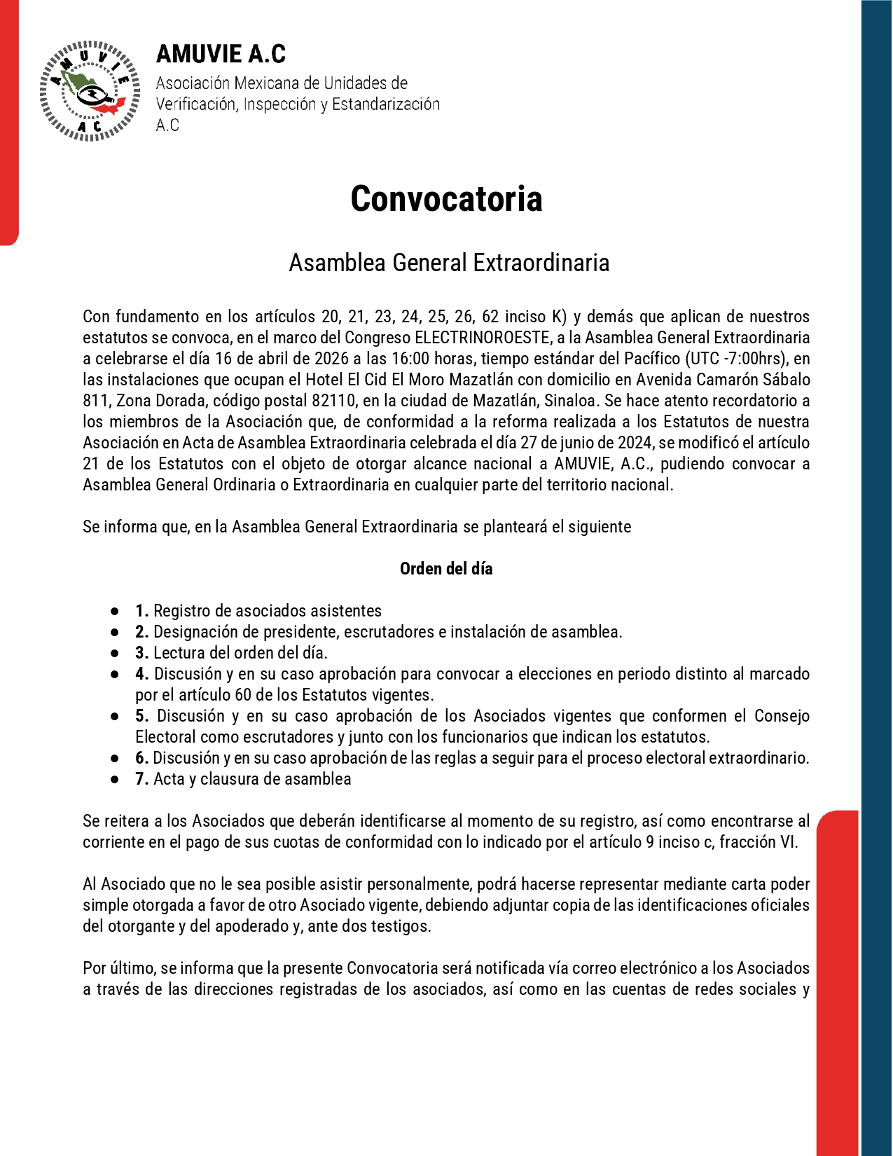CONVOCATORIA ASAMBLEA extraordinaria 2026